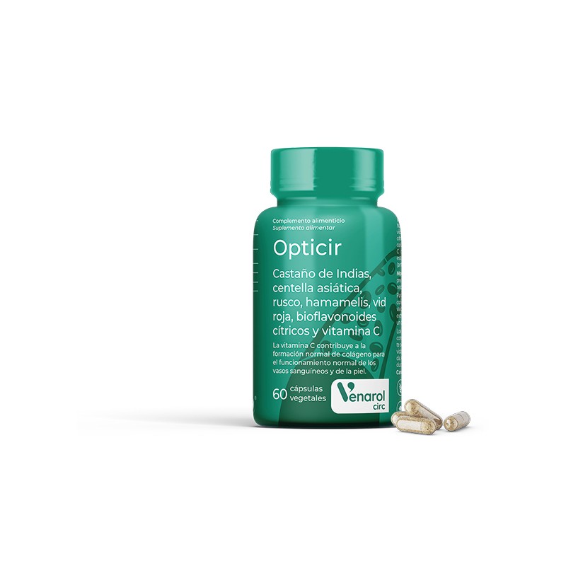 Producto a base de castaño de Indias, centella asiática, rusco, hamamelis, vid roja, bioflavonoides cítricos y vitamina C.