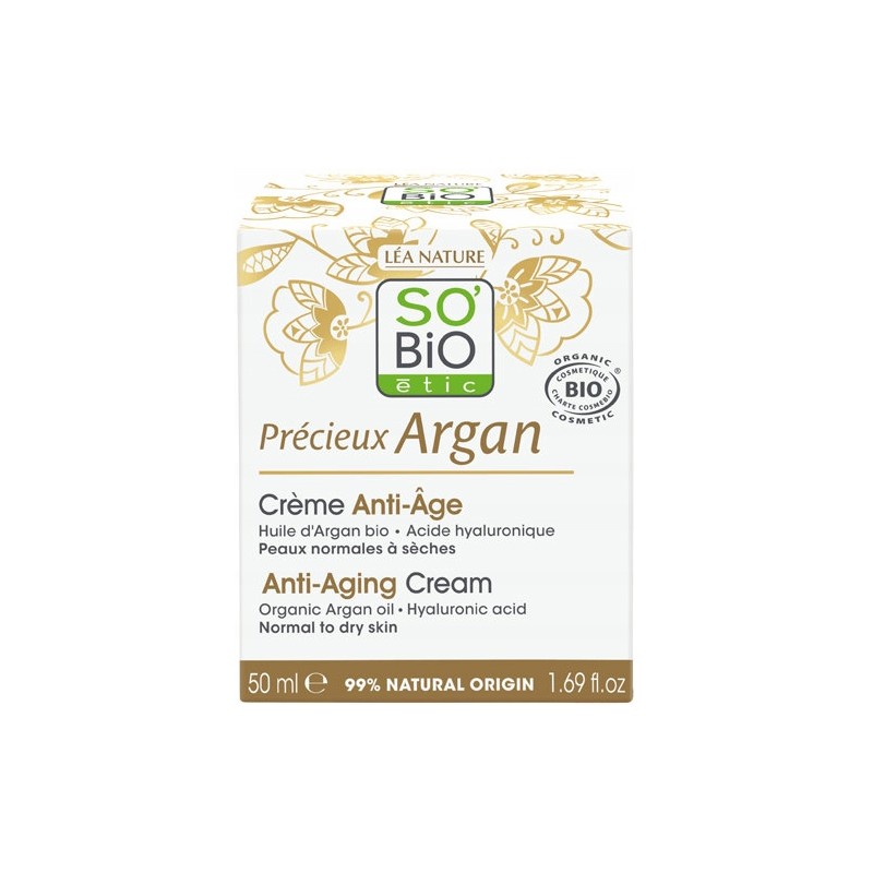 Esta crema antiedad de Sobio corrige los signos del envejecimiento con sus principios activos de aceite de argán bio y ácido hialurónico natural.