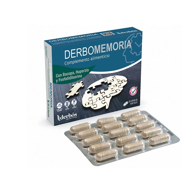 Complemento alimenticio con Bacopa, Huperzia, fosfolípidos y vitaminas.