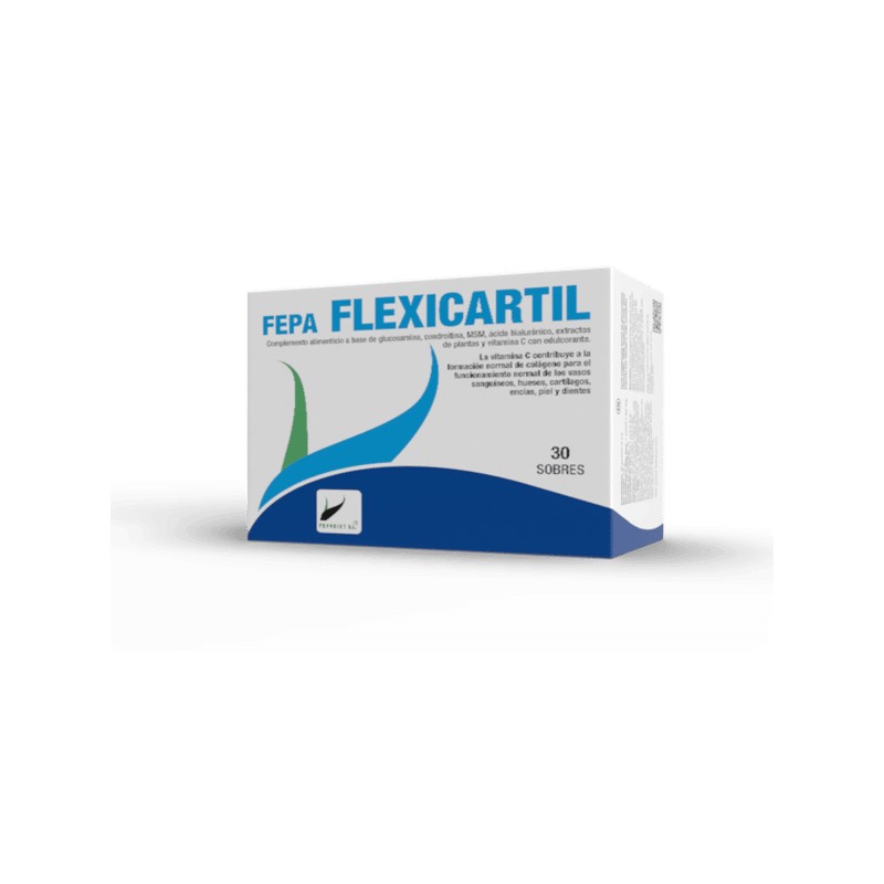 Flexicartil es un complemento alimentario formulado con glucosamina, condroitina, MSM, ácido hialurónico, extractos de plantas y vitamina C.